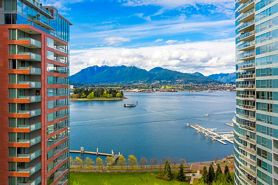 This waterfront room faces the Coal Harbor neighborhood. It features floor-to-ceiling windows, complimentary WiFi, a 37-inch HD LCD TV and a Keurig coffee maker.